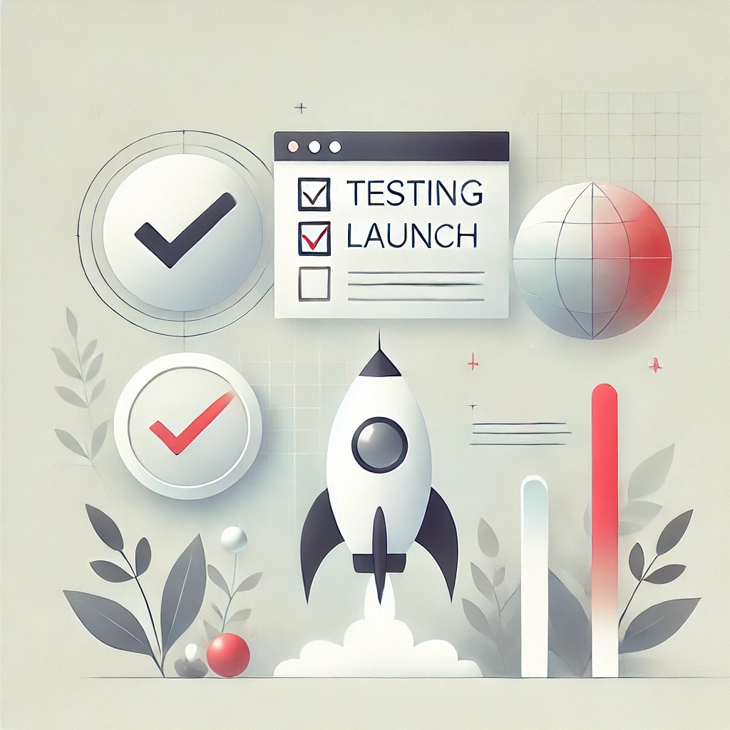 Conducting thorough testing to detect and fix errors, followed by the official project launch and ongoing maintenance.